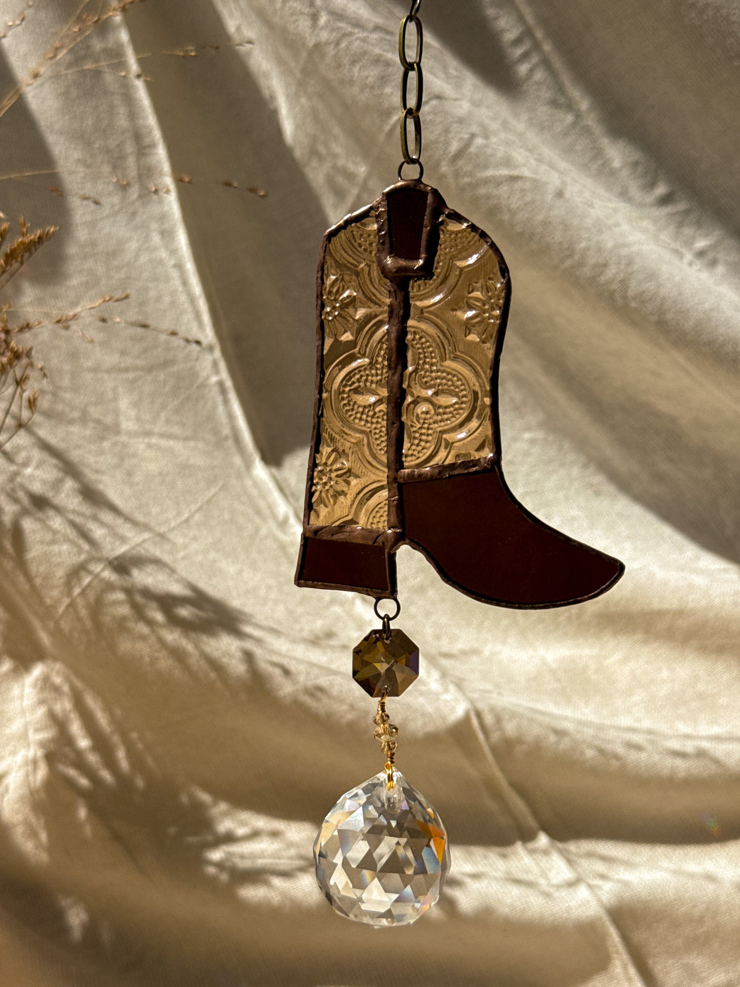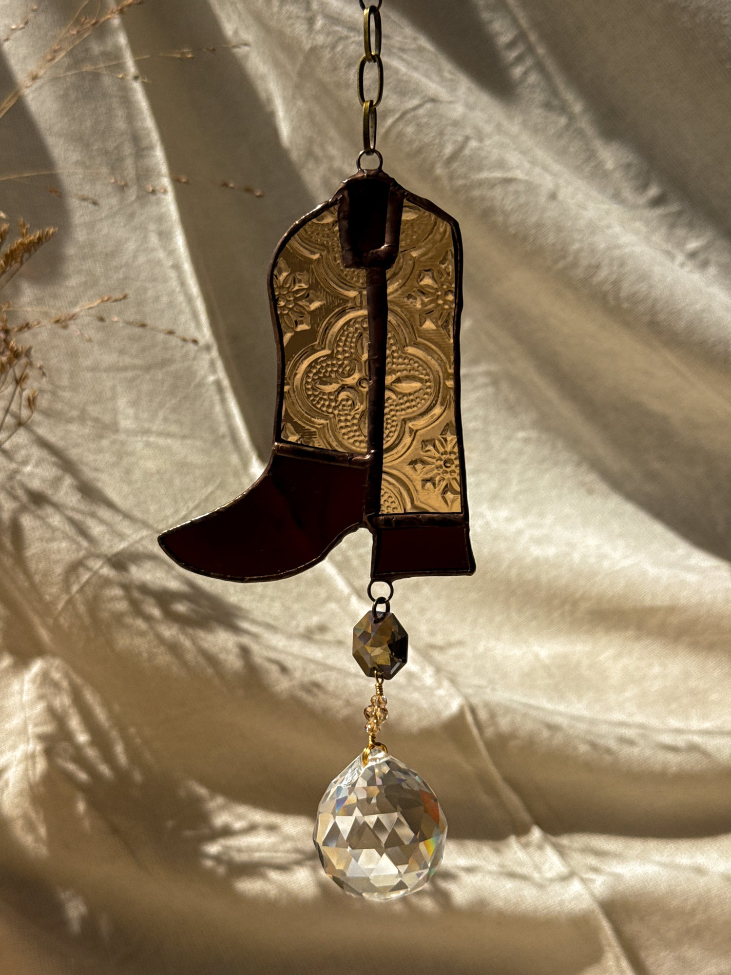 Stained glass suncatcher handmade by MOM (S.Y.) and me.
