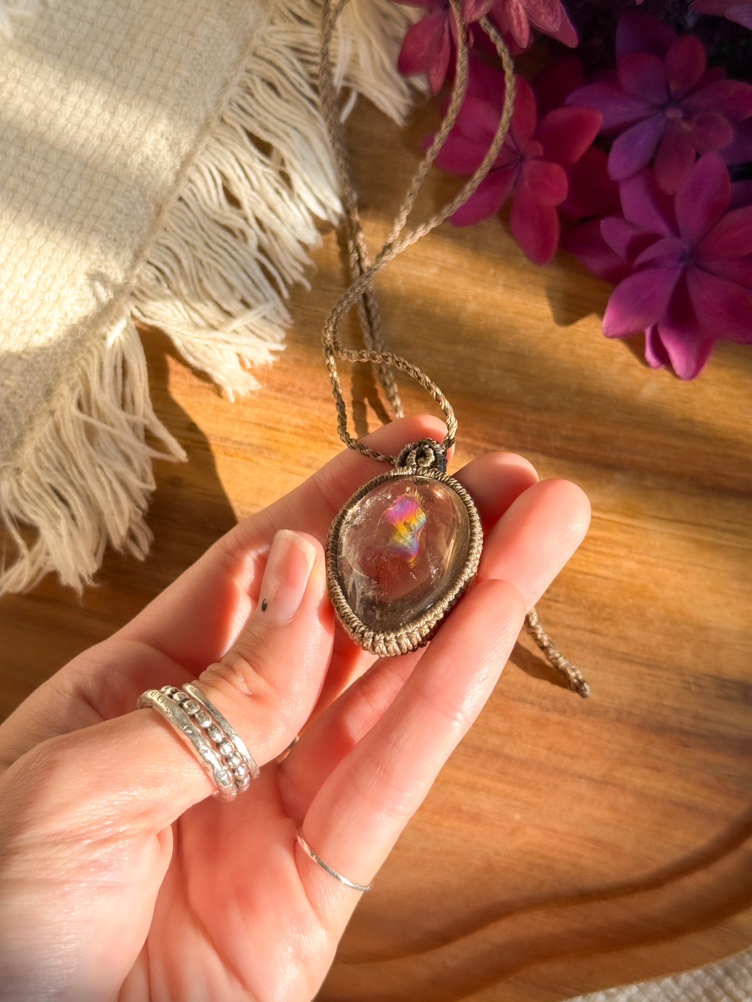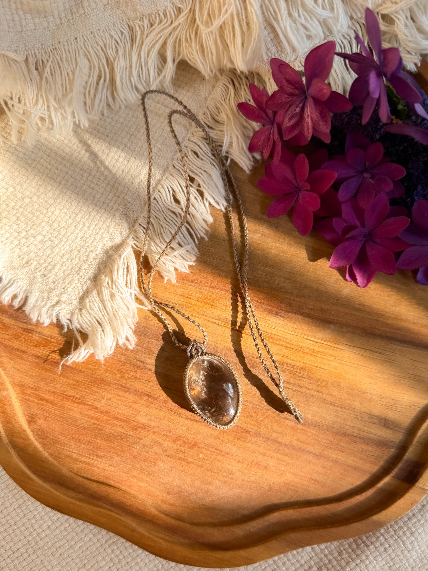 Macrame Necklace - Iris Quartz with Smoky Quartz 【Imported】