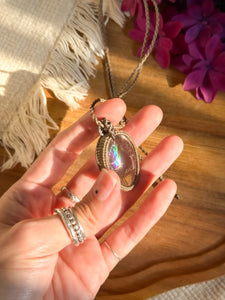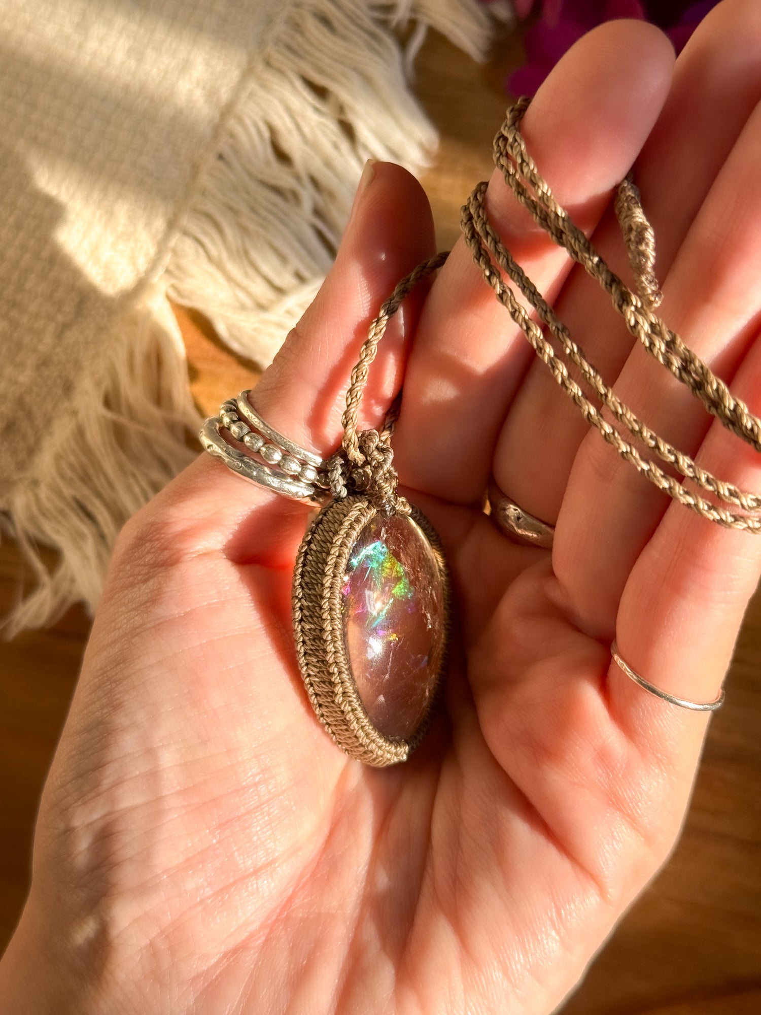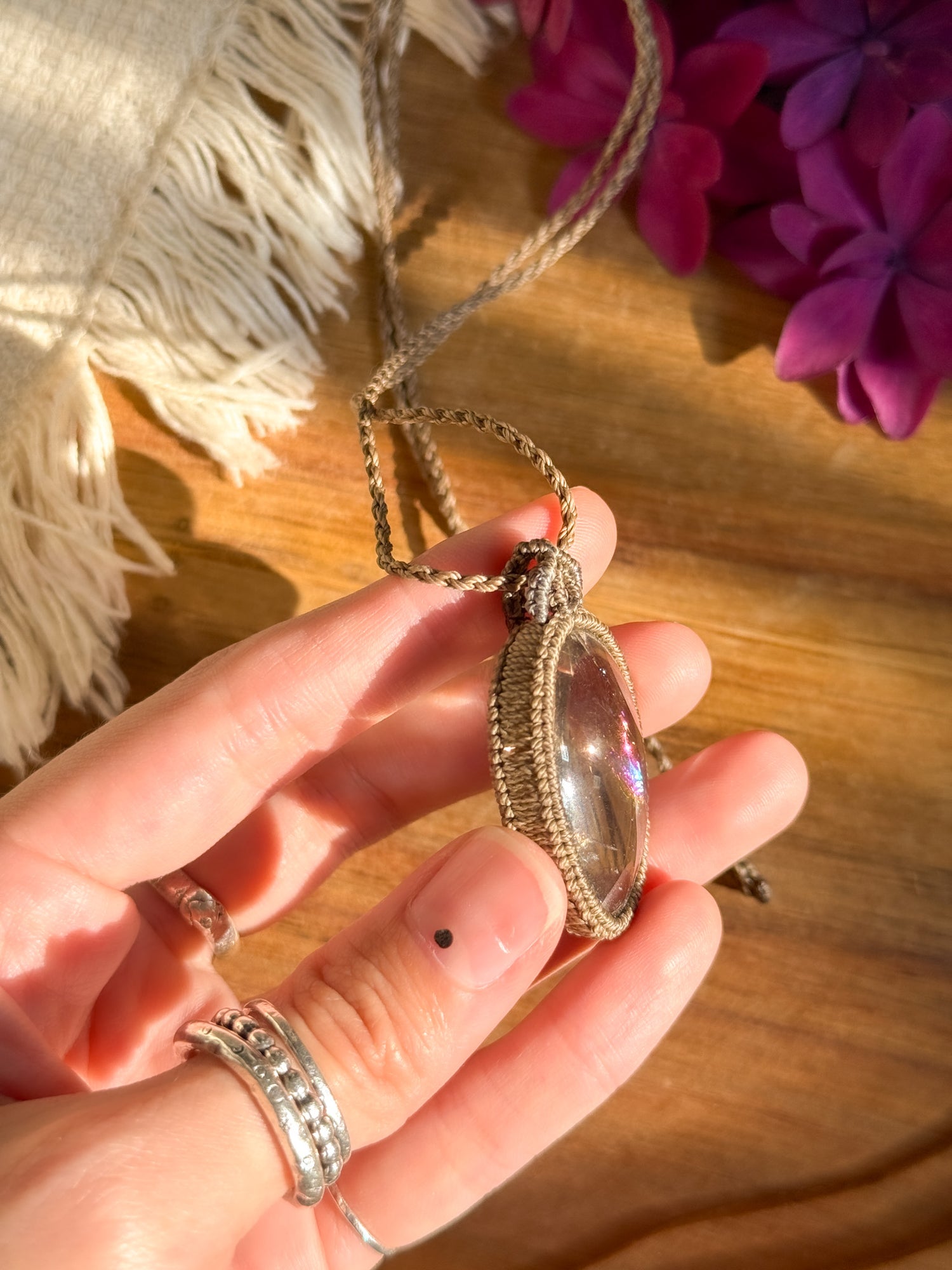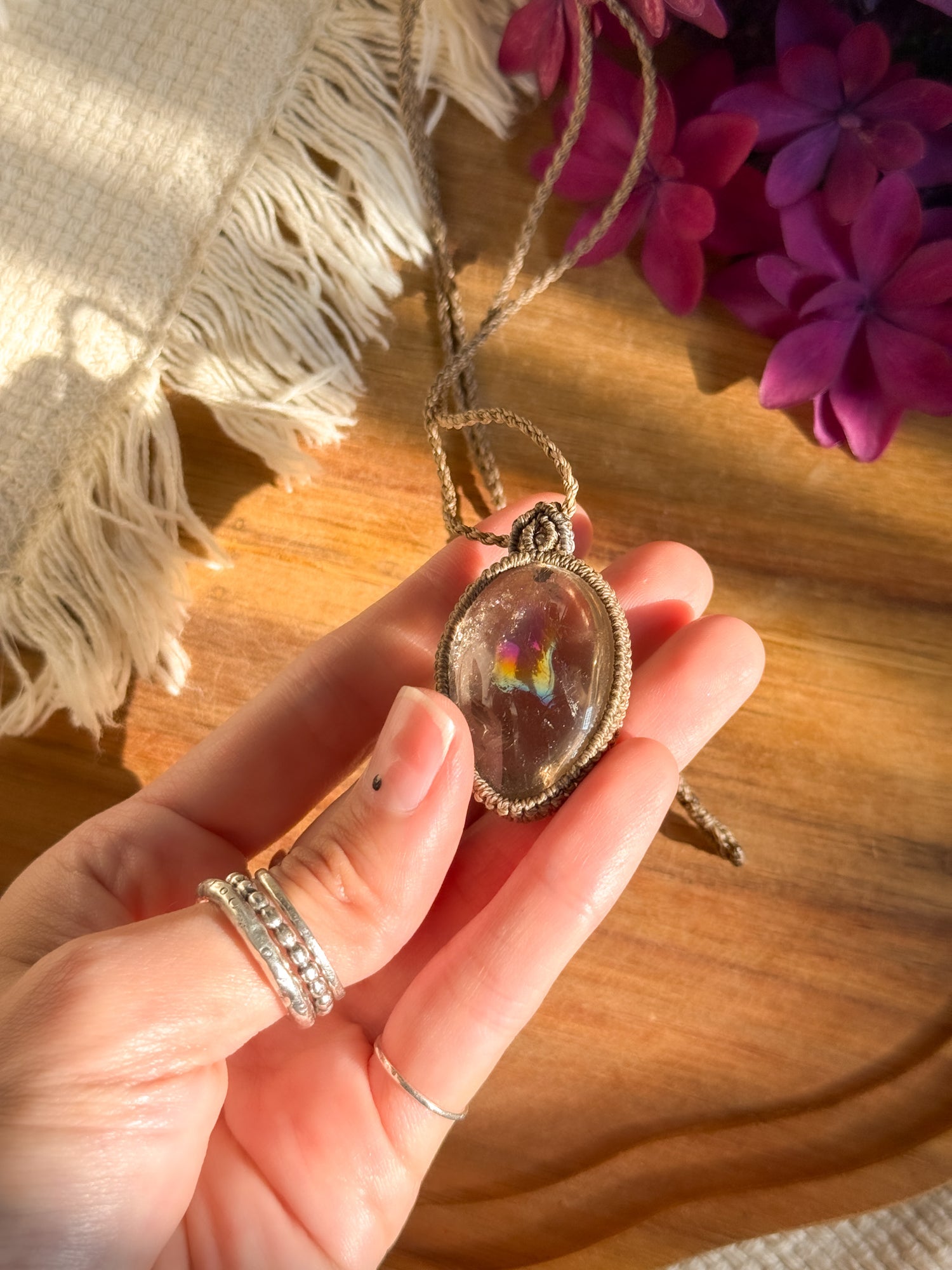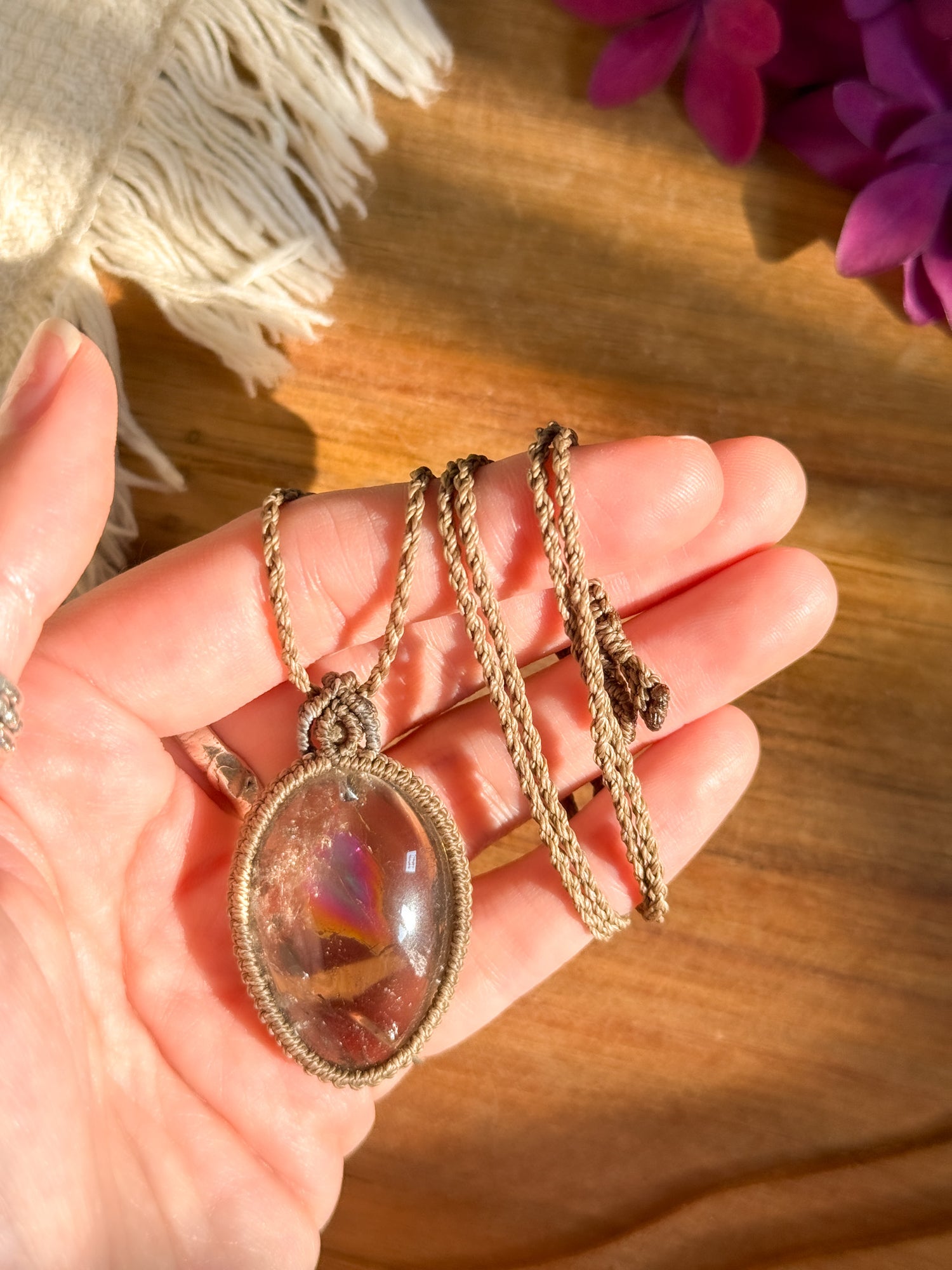 インポートしたアイリスクオーツ水晶のマクラメネックレス。