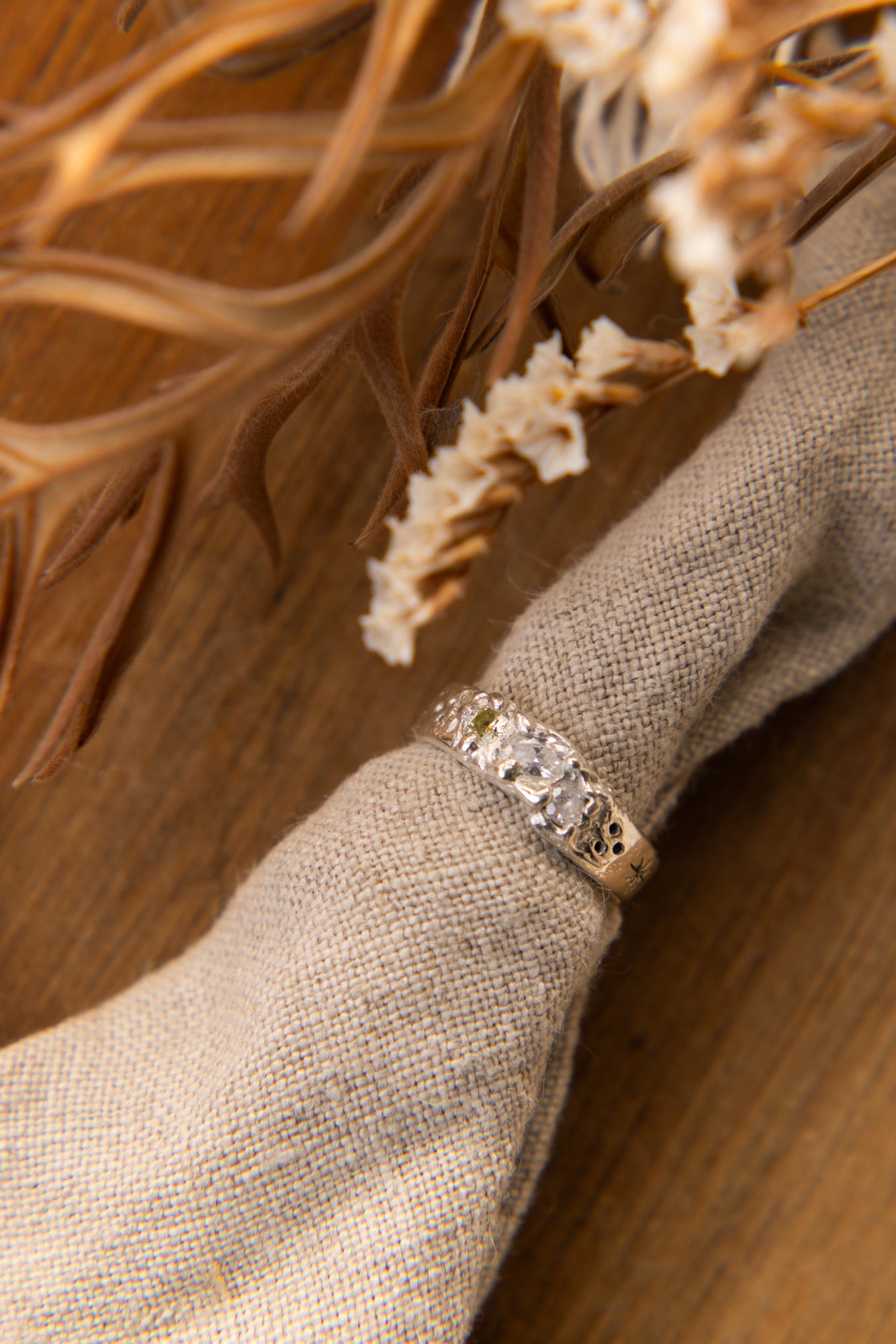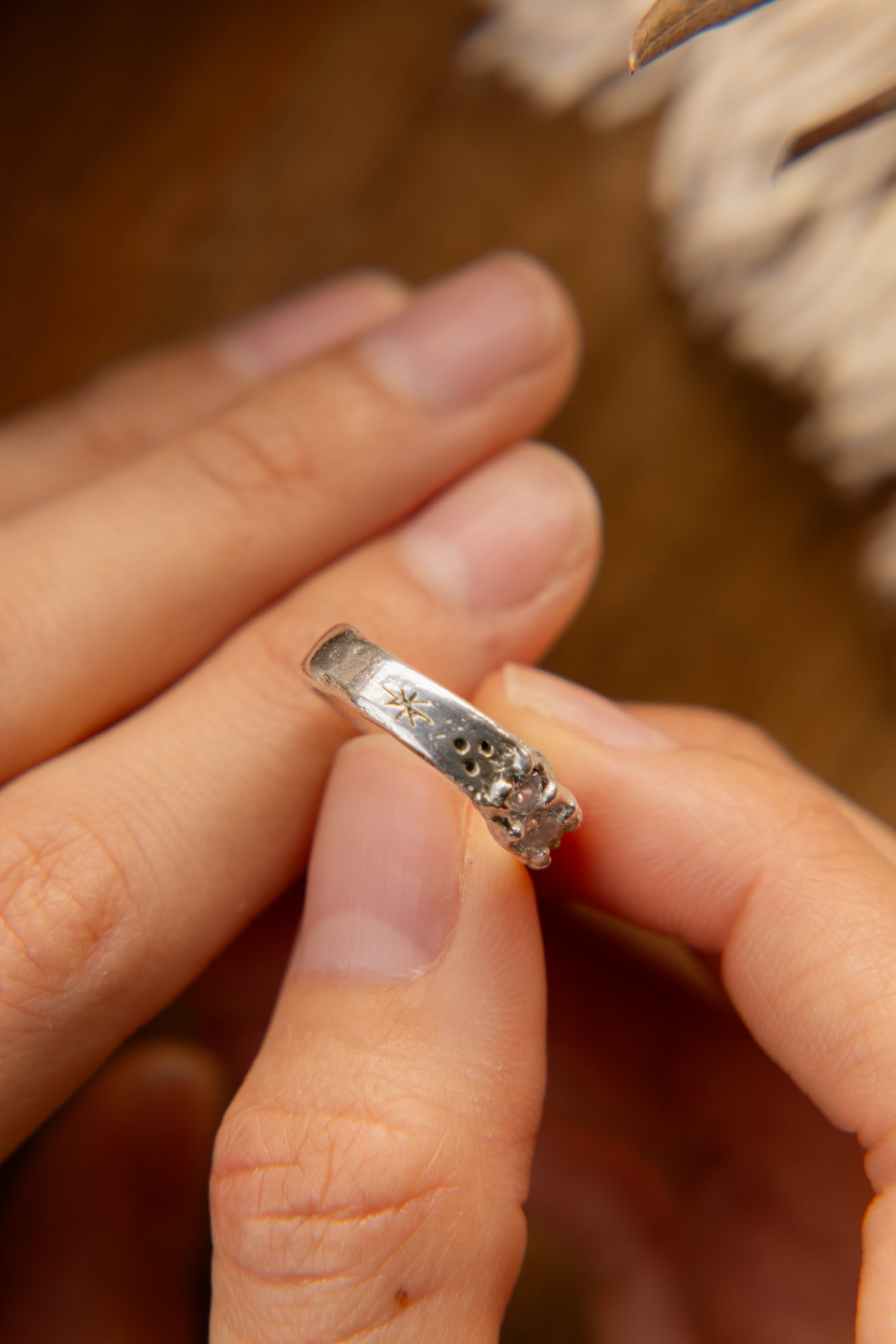 クレイならではのテクスチャーを残しつつ存在感のあるリングに仕上げました*