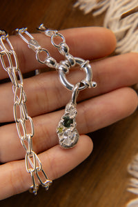 Mossgreen stone Pendant top with Chanky Chain Necklace B