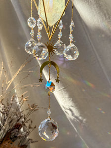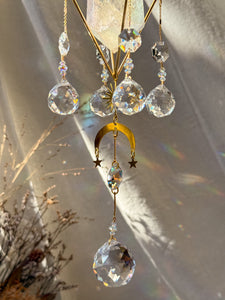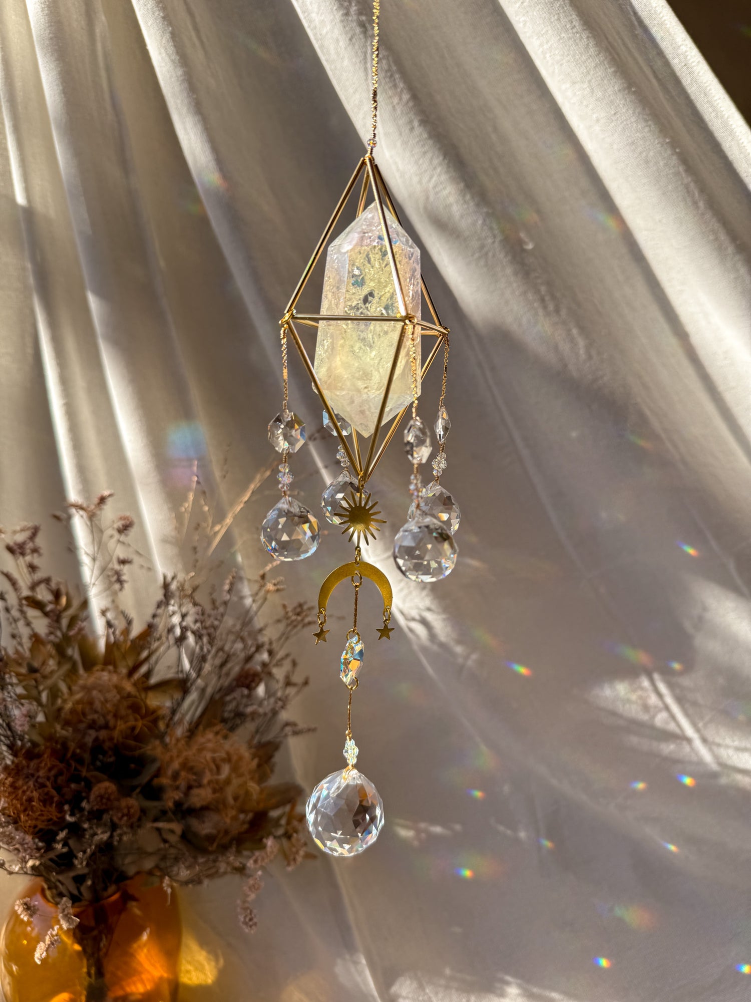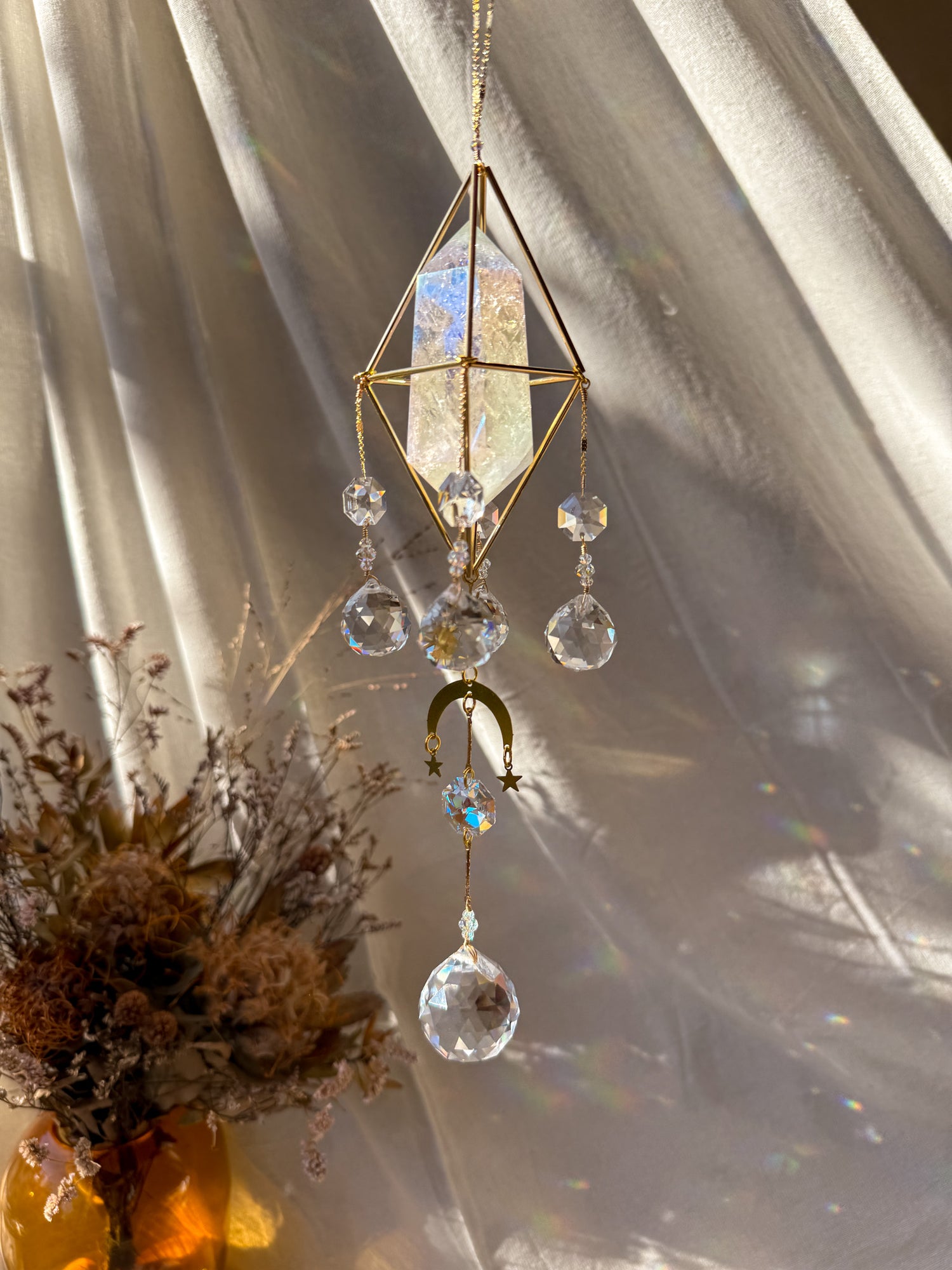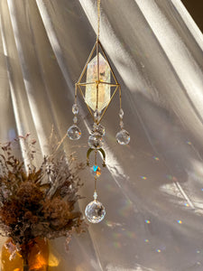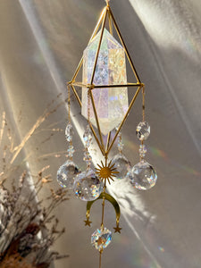 Suncatcher with diamond motif, Rainbow Aura Quartz and Swarovski.