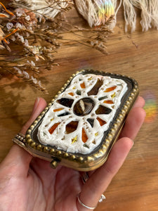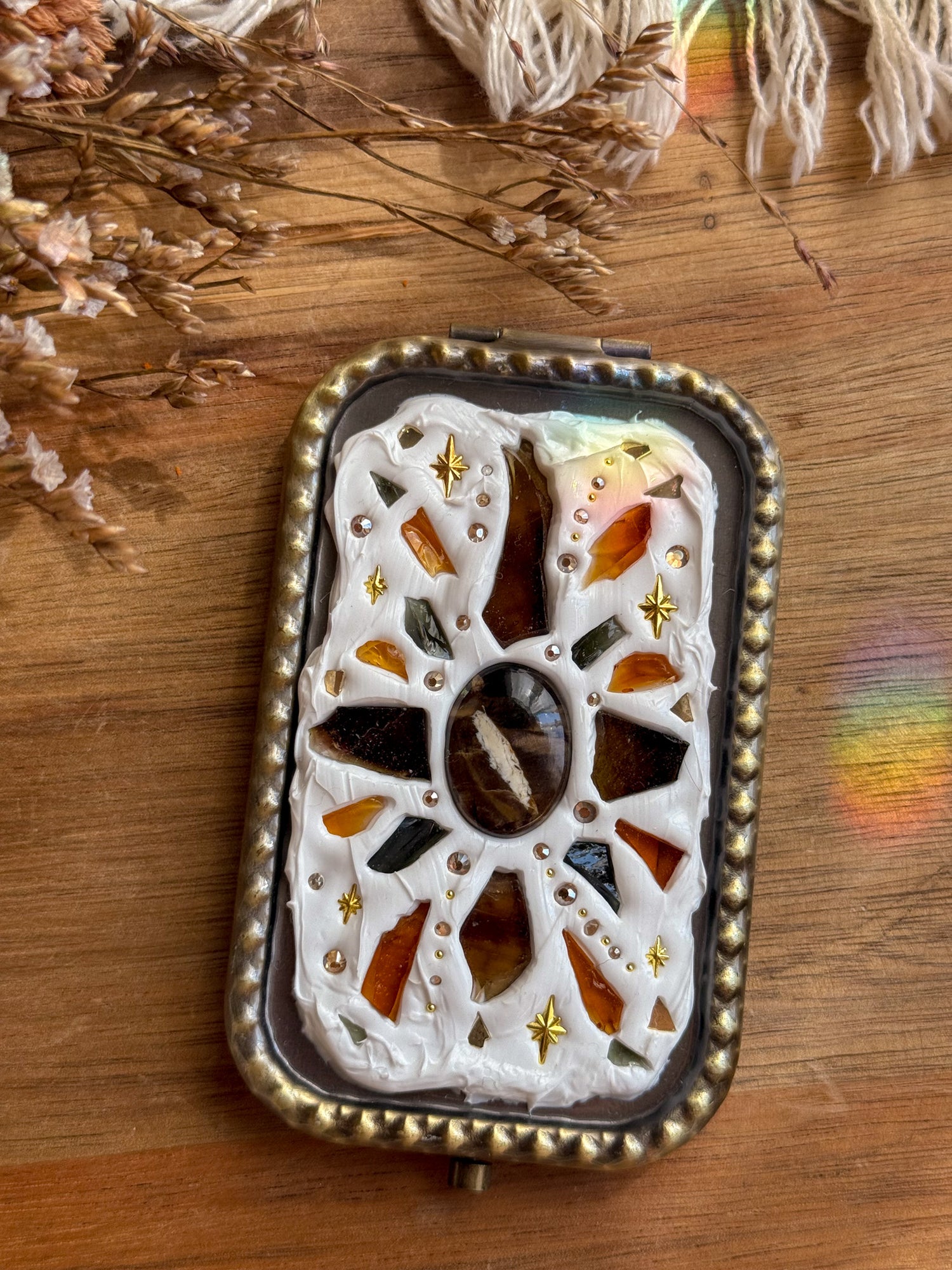 ステンドグラスの端材を利用したデコレーションコンパクトミラー。