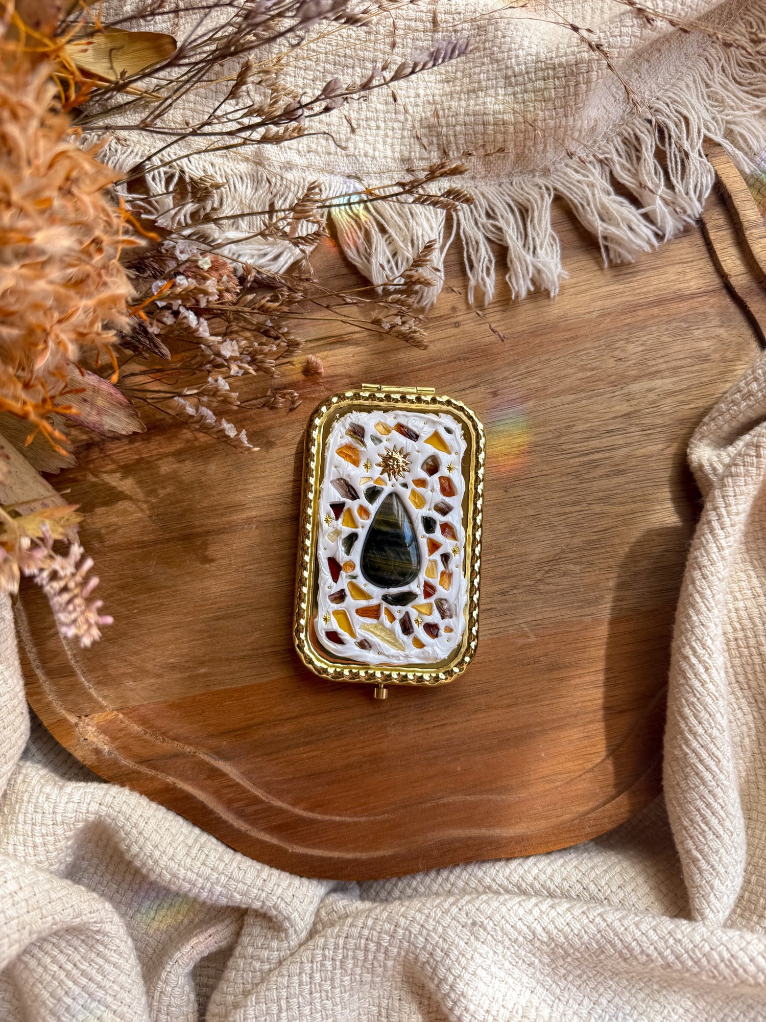Upcycle glass mirror - Gold J - Mix Tiger Eye