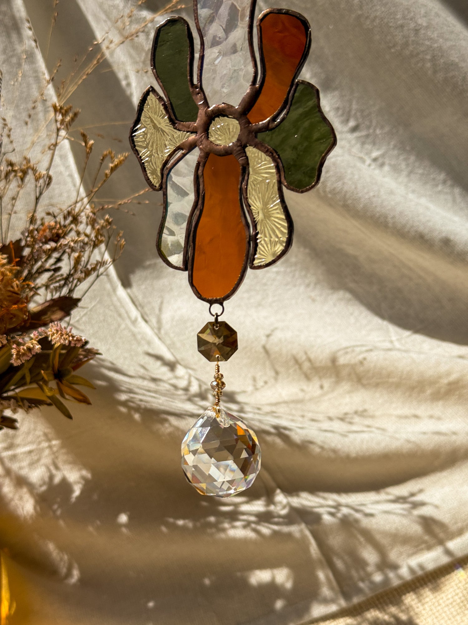 母と共同製作で製作したステンドグラスのサンキャッチャー。